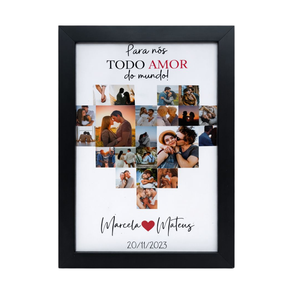 O quadro possui espaço para 3 fotos. Todas podem ser enviadas pelo WhatsApp.